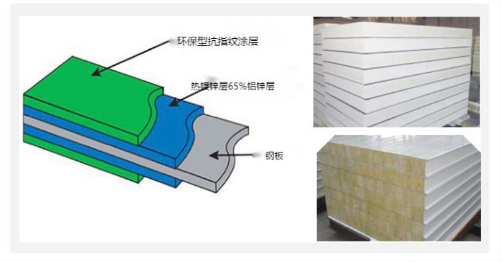B.巖棉板。總厚度50mm,密度50kg/m3;表面板厚度0.4mmG.I/0.5mm鋁合金;防火性能更好。