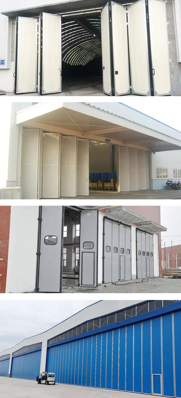 工業折疊門主要由門框、門扇、定向裝置、傳動桿、傳動部件、轉臂部件等部件組成。根據使用場合的不同,工業折疊門不僅可以裝在室內,還可以安裝在室外,靈活性強。